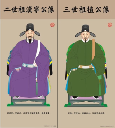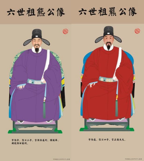 祖像是家族文化的精髓,是精神的寄托,是族人祭拜仪式的载体,历代都受到族人的关注。在走访各地饶氏族人的过程中,部分族人反映族谱中祖像绘制各自为政,五花八门,有些明显与祖先所在的时代身份不符,希望族盟股份饶氏文化研究中心牵头进行祖像研制,供全国饶氏免费使用。随着呼声日高,族盟股份饶氏文化研究中心于去年开始着手研究饶氏祖像。经过参看众多《饶氏族谱》所载的祖像,以及吸收中国服装史研究成果,参考古代文献中官服记述以及古代国画作品中的人物服饰,结合饶氏祖先所在年代、所任官职品级、生活习俗,聘请专业的画师进行创作。经过几番的修改和论证,终于定稿。