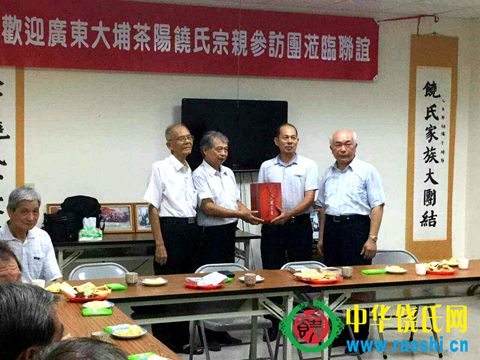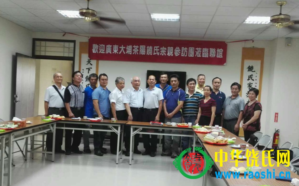 2016年4月清明到山西临汾祭拜尧帝时,广东大埔县茶阳饶氏宗亲在临汾天鹅大酒店认识饶芸珊、饶荣政、饶鼎荣、饶荣祺等几位台湾宗亲,之后一直保持联系。2016年5月,台湾宗亲饶鼎荣、饶荣政、饶芸珊、饶金妹四位宗亲到大陆寻根问祖,了解族谱等事宜。回台之后,热情邀请茶阳宗亲到台湾访问旅行。