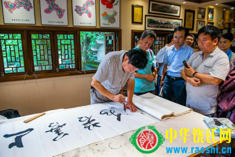 讲座结束后,“全国百位优秀人民书画家”、中国书画名家协会会员饶文福宗亲还在现场为大家奉上了绝妙的书法表演,一幅幅行云流水的行草书法作品提供给现场作家族知识有奖竞答,将在座宗亲参与互动的热情气氛推上高潮。