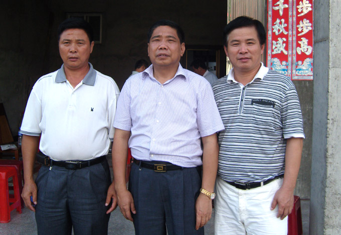 在下午举行的福建分会筹备会上,经大家推举产生的第一届领导班子:名誉会长饶浩荣(中)、会长饶炳森(左)、秘书长饶岩河(右)。