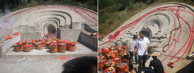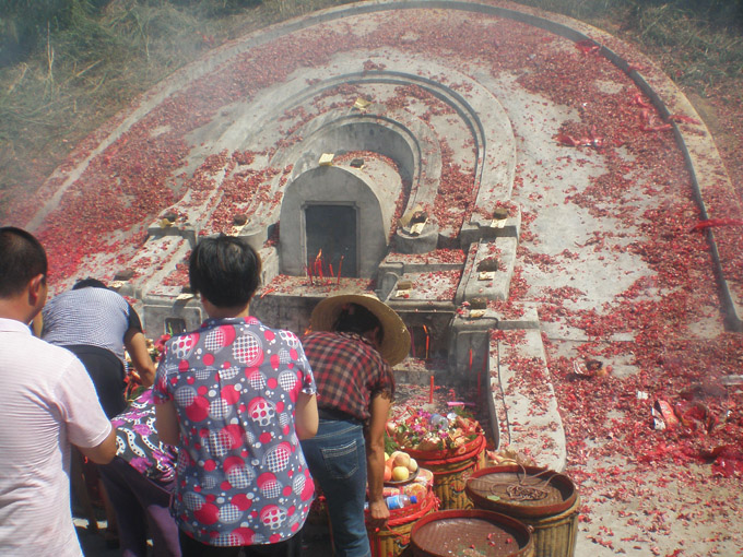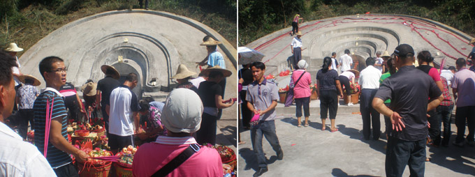 上图左为向永和公妣杨氏墓上香的村民,上图右为向永和公墓上香的村民。