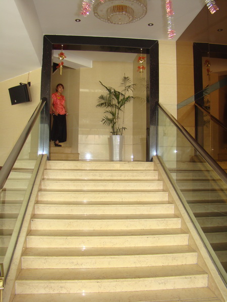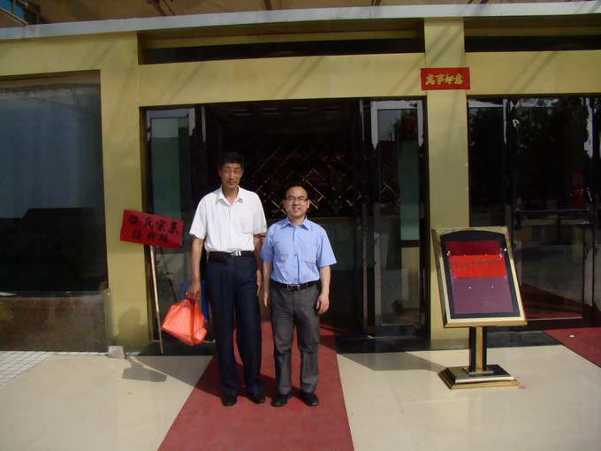 饶玉华总会长和分会长饶伏雏在酒店门口合影