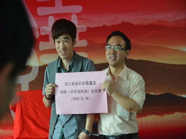 浙江宗亲饶道义(左)为基金捐资饶氏网运营费3200元。