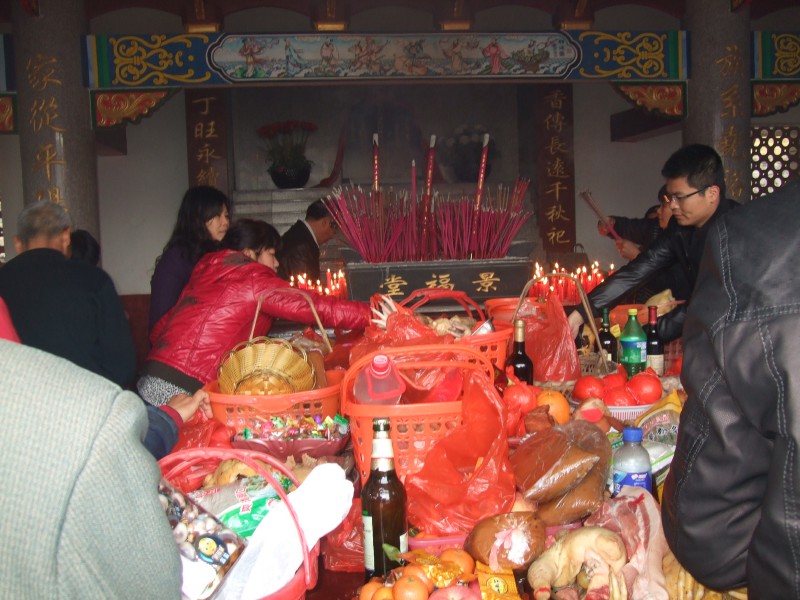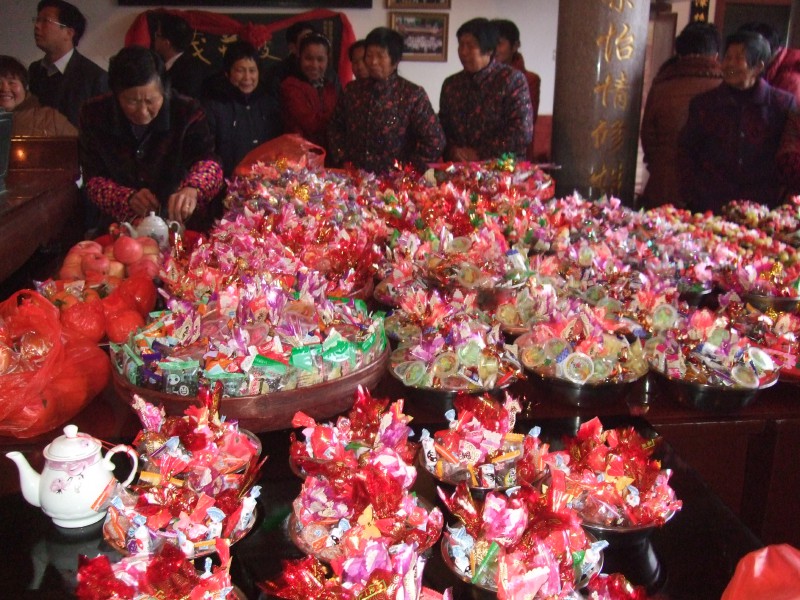 2012年1月23日(正月初一),在龙岩红坊(船巷)饶氏景福堂内充满喜庆气氛,共有18对新人与其长辈随带香茗甜点,早早到来,准备举行敬茶团拜礼俗。