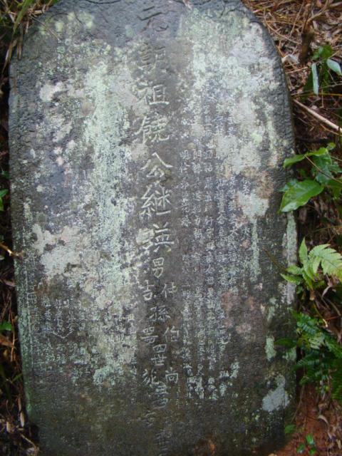 经察看,我们找到了位于当中的“继瑛公墓”,墓碑右边抬头为“原葬本保上饶屋后上窠虎形 妻王氏 男仲佶”,正文是“始祖考饶公继瑛府君之墓”,左边落款有“奉县主杨×断立原位乾隆廿九年十二月重修”等字样,有部分碑文已经字迹不清,无法辩认,但表述十分清晰明了。位于山坡最下面的有一方墓碑最大,正文书“元朝祖饶公继瑛 男仲佶 孙伯器 四世尚苑五世叔安 六世文斌 ”,落款为“明崇祯十六年十二月十世孙×××”,碑文字数较多,由于字形较小,多不能辩认。于是大家秉烛焚香,拜祭先祖,万炮齐鸣。拜谒始祖继瑛公,完成了武义西畈饶氏后裔子孙的百年心愿。