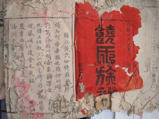 下饶修于清宣统元年的《饶氏族谱》,虽然破损严重,但却珍贵,保存到至今不易。