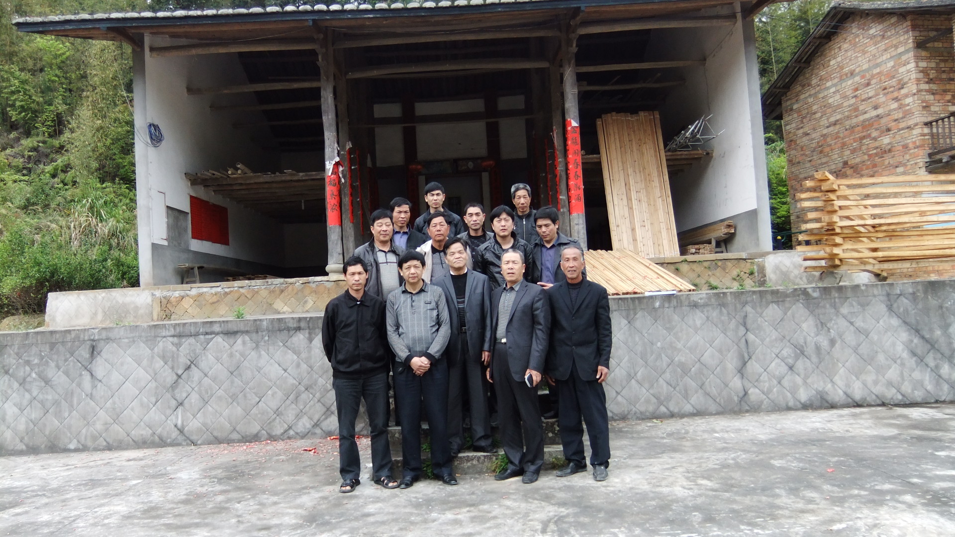 在富洋祠堂前永泰宗亲与龙岩船巷宗亲合影留念