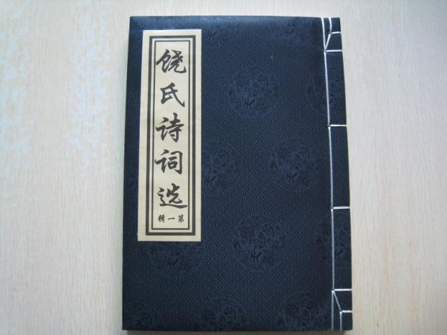 《饶氏诗词选》采用仿古装帧,缎面线装,内页为书画纸,全手工装订。本书定价68元(免邮资),欢迎广大宗亲订购。