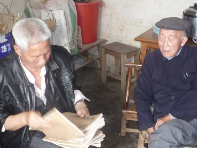 老人从柜顶把密封好的族谱拿给我们看时,整整齐齐,一层一层的包裹着,让我们感觉到老人真的太有心了。我们给两位宗亲介绍了总会的工作情况,老人人唏嘘不已,但因年事已高,无法成行。谈到当年宗祠被毁,无比伤感。