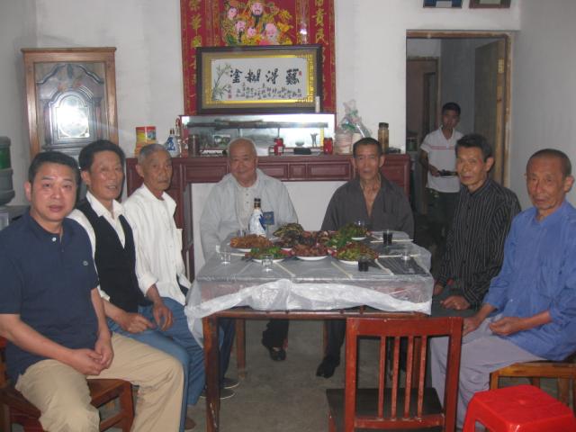 饶克明宗亲(左一)与当地宗亲长辈相聚