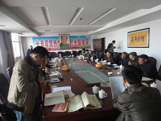 20012年11月4日,秋高气爽,风和日丽,族盟股份饶氏文化研究中心湖南分会会长饶悌清、常务副会长饶国江、副会长饶世强、秘书长饶暑霞、城步宗亲代表饶立成一行,在长沙市工作的平江长寿籍饶春如宗亲一家的陪同下风尘仆仆地来到了平江长寿饶姓家族中走访,他们详细察看了饶家祖屋——长寿镇盆形屋和中段屋,和当地饶姓老人进行了亲切交谈,查看了饶氏族谱,并用相机留下了族谱和祖屋等珍贵资料影像。尔后,在长寿宾馆与早已等候在那里的当地14名饶姓代表汇合,并向代表们发放了总会的饶姓刊物和有关饶姓活动的影牒,传达了总会的成立宗旨,共同商讨了今后工作的重点和工作程序,并和与会人员合影留念。